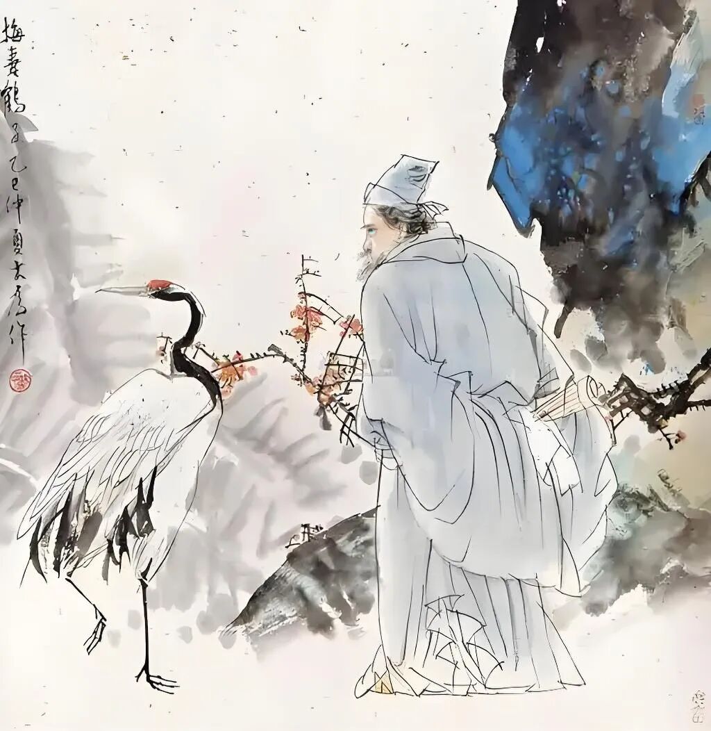 隐逸诗人心不仕,孤山纵鹤任翱翔。 梅妻作伴树风格,笔下生花传世香。